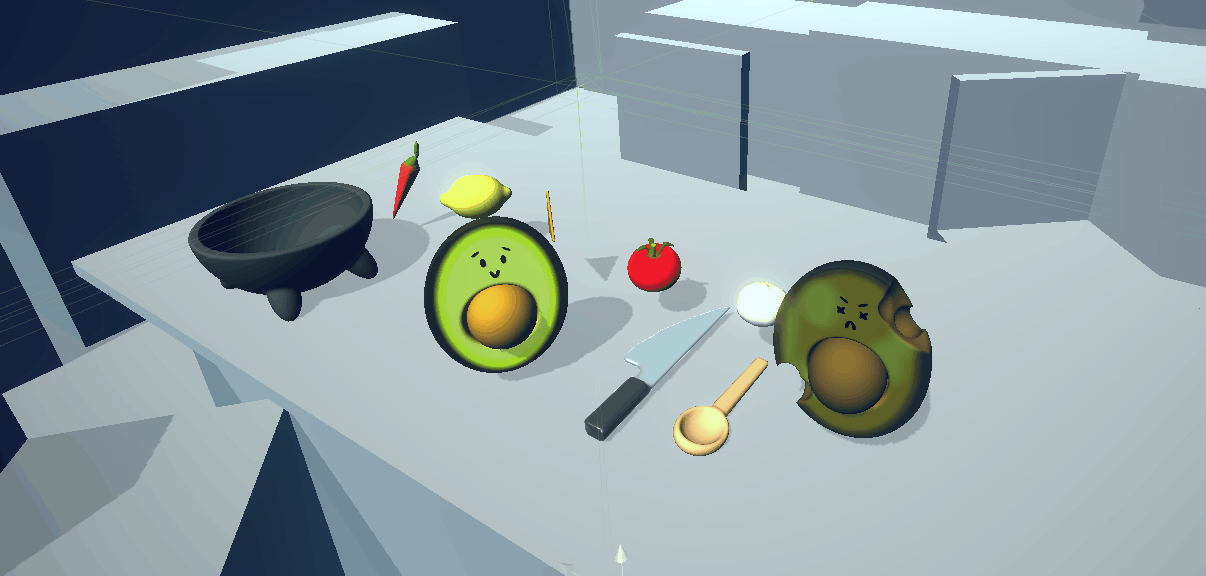 The concept of the game was that you were a healthy avocado trying to become guacamole while a group of rotten avocados tried to make you turn bad. All of this while looking for the guacamole's ingredients and evading the series of obstacles found in the kitchen. The goal was simple, there wasn't as many assets needed so we thought it was doable.